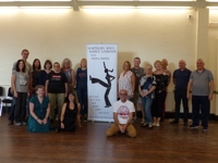 Before starting we worked through a few techniques and had a bit of fun, then the hard work began. I've never seen so many people doing the backward stomp so well at the same time -'impressive' (should have recordrd it). With so many stomps and shuffles to learn, we had to cut it short and go back to the more gentle pace of the basic dance steps, before having another breakand cracking on with the rest of the stomping.