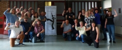 Before starting we worked through a few techniques and had a bit of fun, then the hard work began. I've never seen so many people doing the backward stomp so well at the same time -'impressive' (should have recordrd it). With so many stomps and shuffles to learn, we had to cut it short and go back to the more gentle pace of the basic dance steps, before having another breakand cracking on with the rest of the stomping.